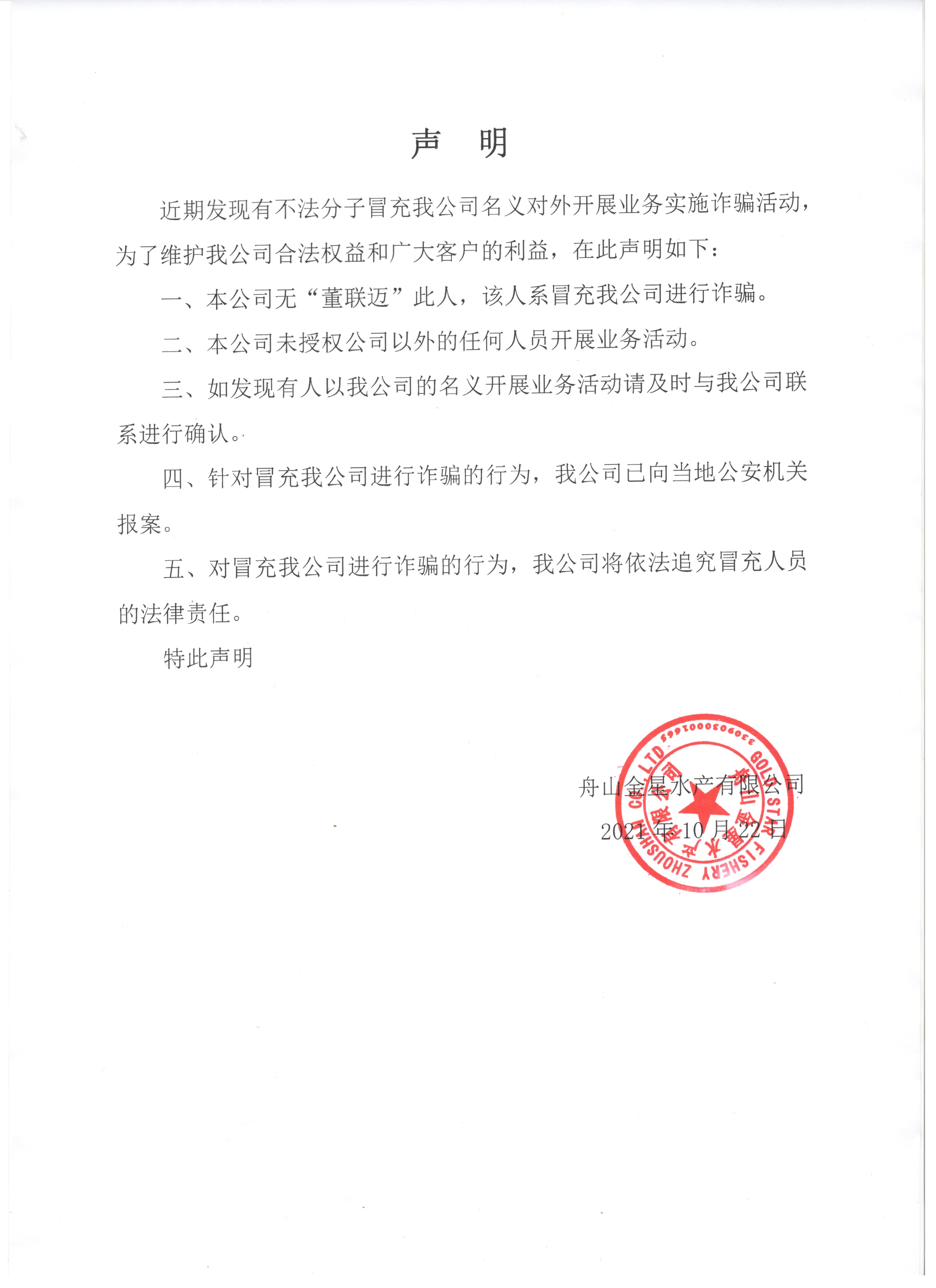 关于近期不法分子冒充我公司名义对外开展业务实施诈骗活动的声明